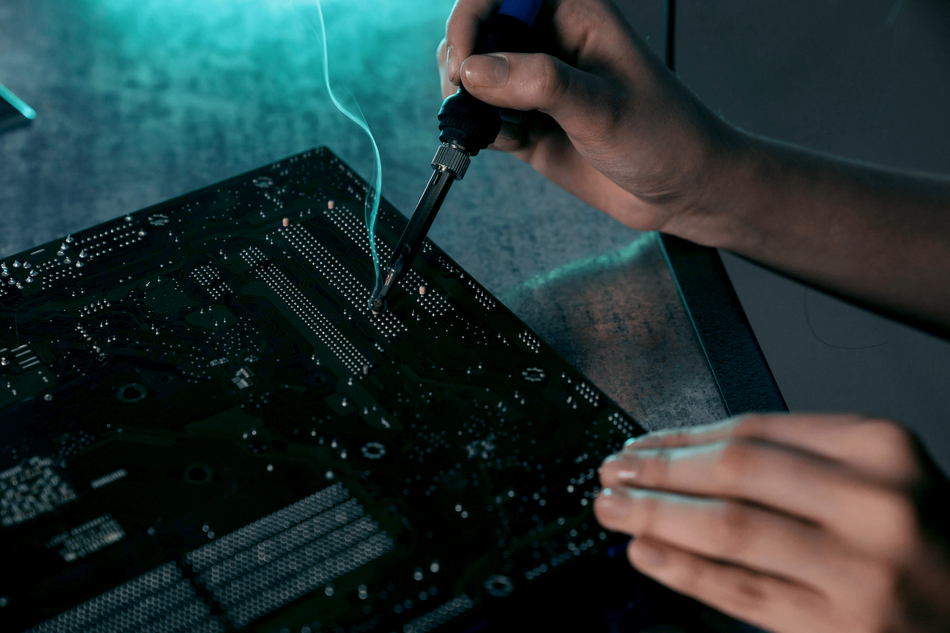 დაზიანებული დედაპლატის და ელექტრო დეტალების შეკეთება.